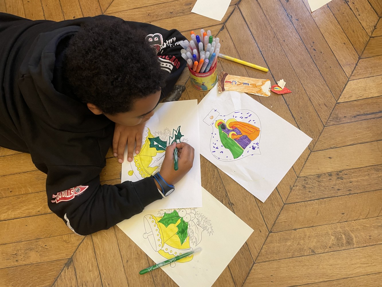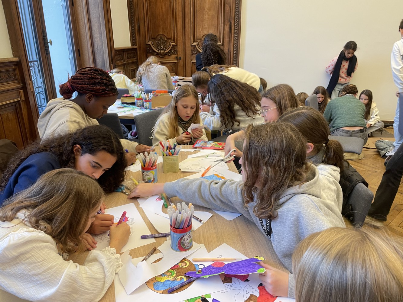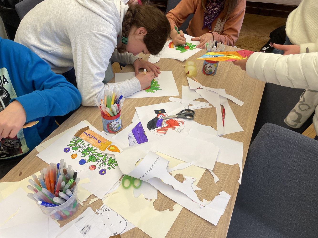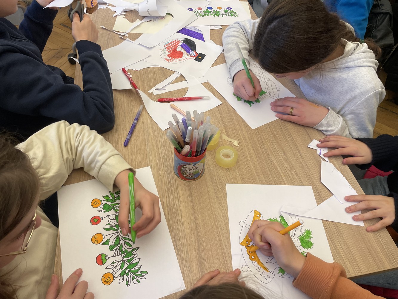 Une cinquantaine d'élèves de 6ème se sont mobilisés sur le temps du midi pour réaliser les décorations de Noël pour les couloirs du collège et les vitres du restaurant scolaire. Découpages, coloriages et découpes des personnages de la crèche dans du carton. Une vraie pépinière !