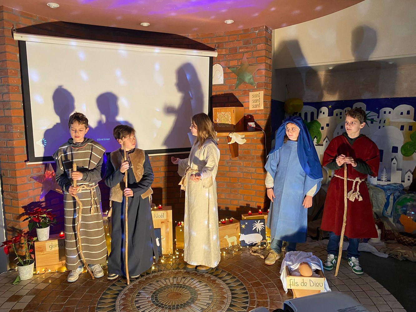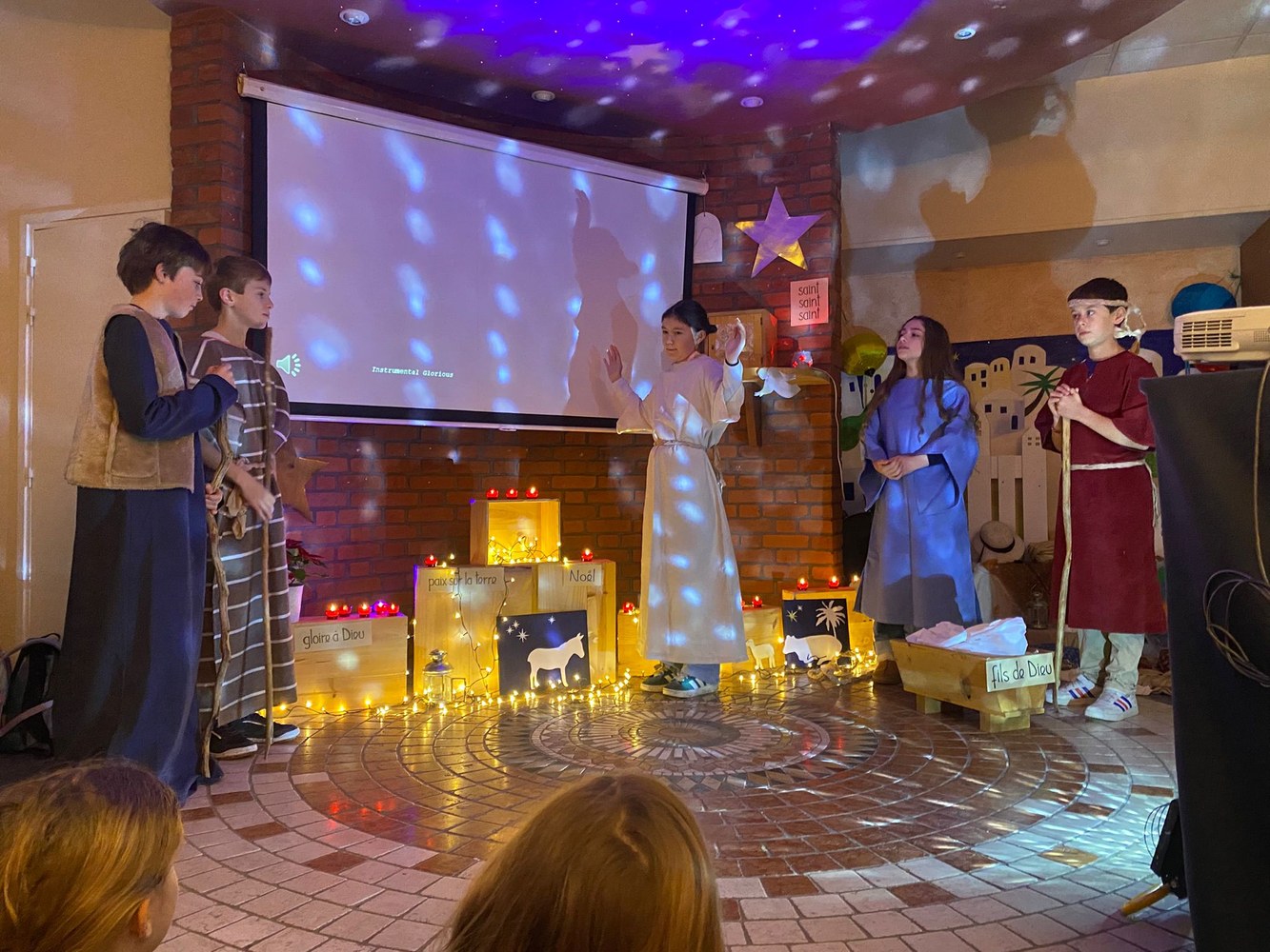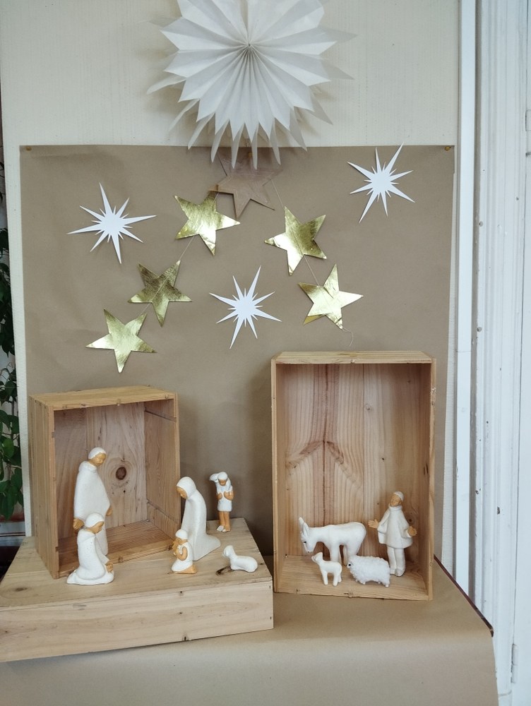 Préparation de la fête de Noël. Décorations, chants, célébrations des petits et des grands, crèche vivante...
